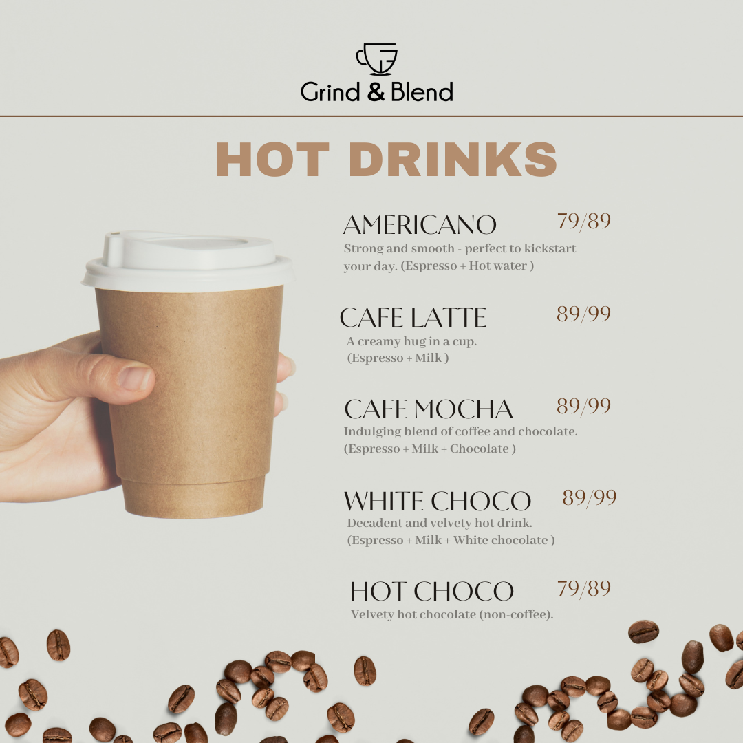 If you're in the Trade Center of Brgy. Calamba, searching for a cozy place to unwind and indulge your cravings, Grind & Blend should be your next stop. This delightful café offers a warm and inviting atmosphere that encourages relaxation while savoring delicious, hearty meals.